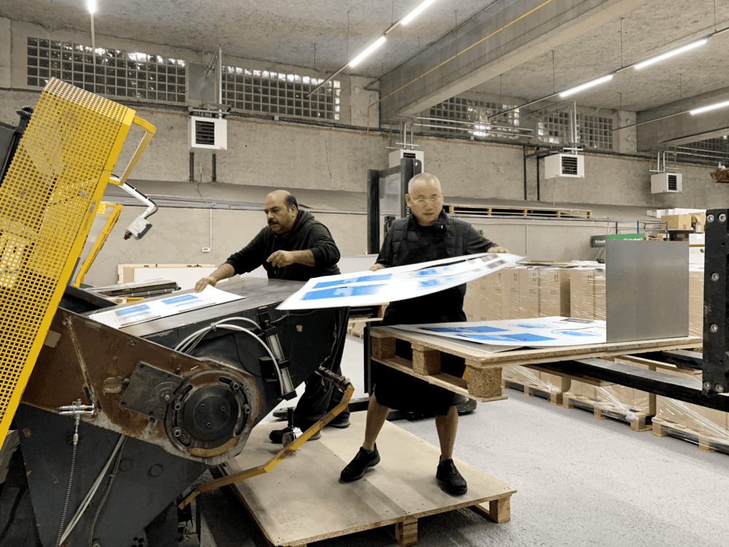 Dans notre nouveau local de 1300 m² notre équipe experte dispose d’un outil de production complet pour la transformation du carton, plastique recyclé, bois